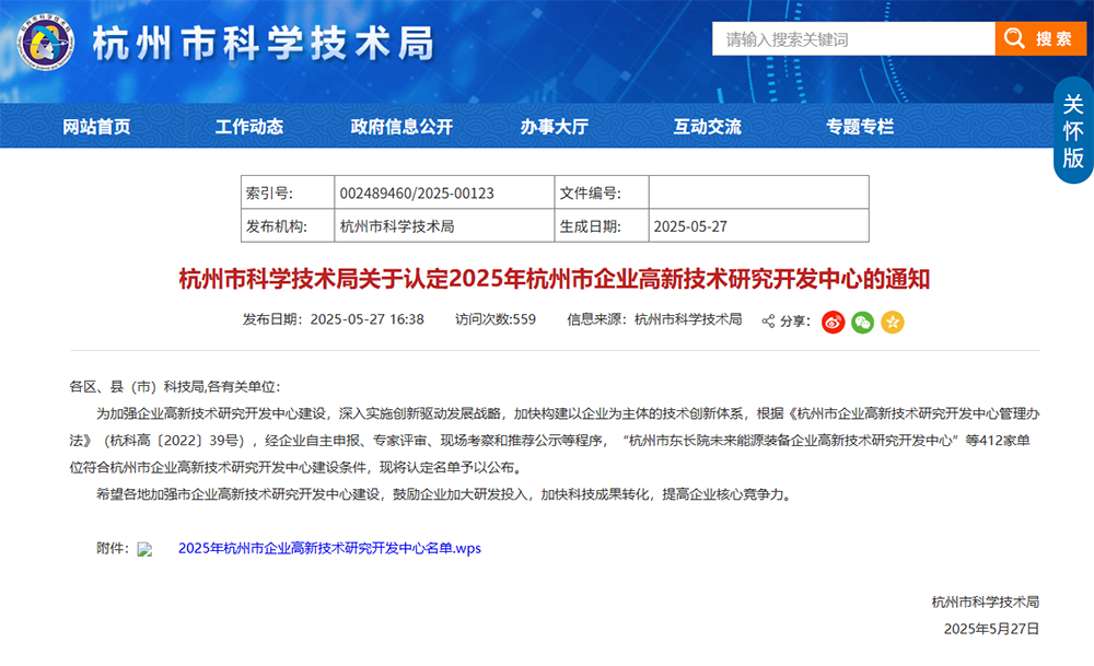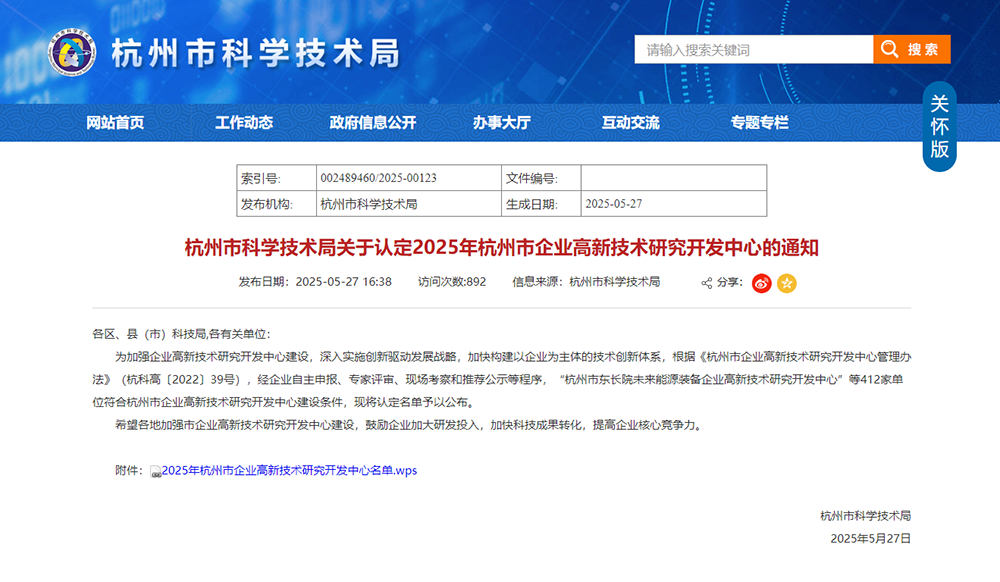 喜訊!浙錢水建入選杭州市企業(yè)高新技術(shù)研究開發(fā)中心