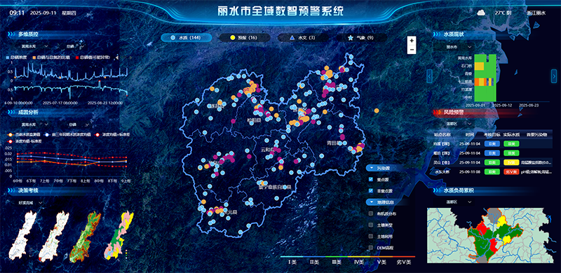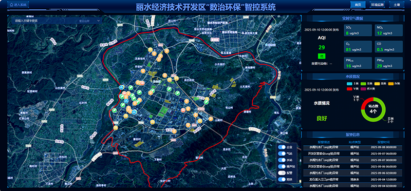 2020年,浙江省環(huán)保集團麗水生態(tài)環(huán)境科技有限公司以麗水市生態(tài)環(huán)境質量監(jiān)測網絡項目為基石成立,依托先進的GIS與數據可視化技術,精心打造了全域生態(tài)環(huán)境監(jiān)測預警系統(tǒng)。該系統(tǒng)共接收474個站點數據,其中麗水環(huán)科自建站點329個,實時匯聚了全市水域、大氣、噪聲、輻射、雷達等多元監(jiān)測數據,日均處理數據30萬條,通過智能感知網絡實現全要素環(huán)境數據的統(tǒng)一管理與協(xié)同分析,使被動的環(huán)境治理轉向主動的環(huán)境預警。