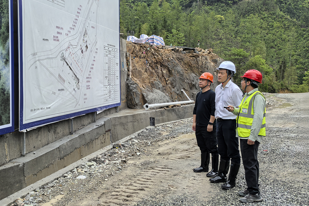 4月22日,省環保集團黨委書記、總經理吳剛一行到慶元抽蓄調研,省環保集團副總經理胡運進、江濱同行調研。期間,吳剛一行深入項目現場,實地調研了通風兼安全洞、進廠交通洞、進場路等關鍵施工面,全面了解慶元抽蓄電站施工進度、質量迎檢準備工作等相關情況。