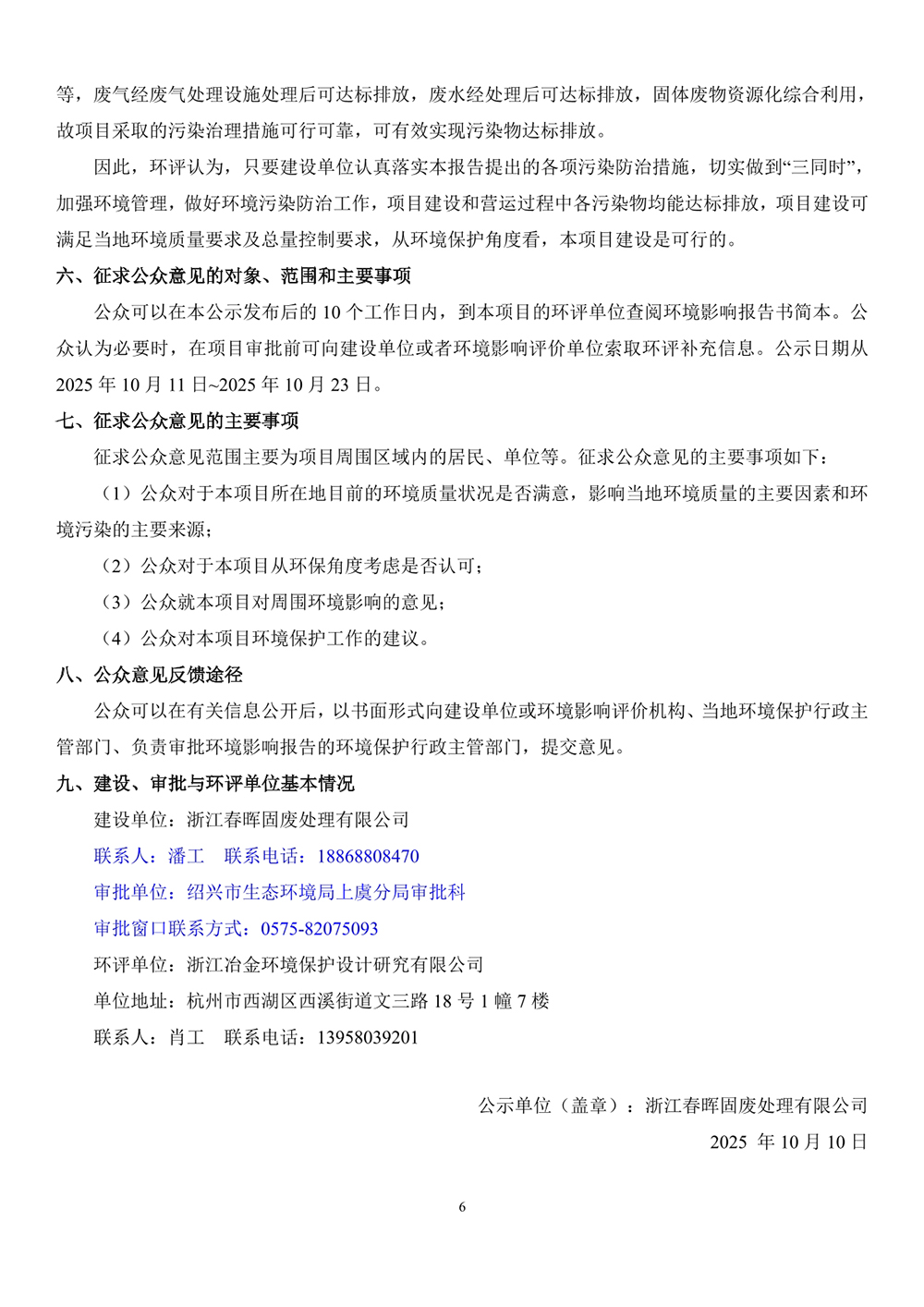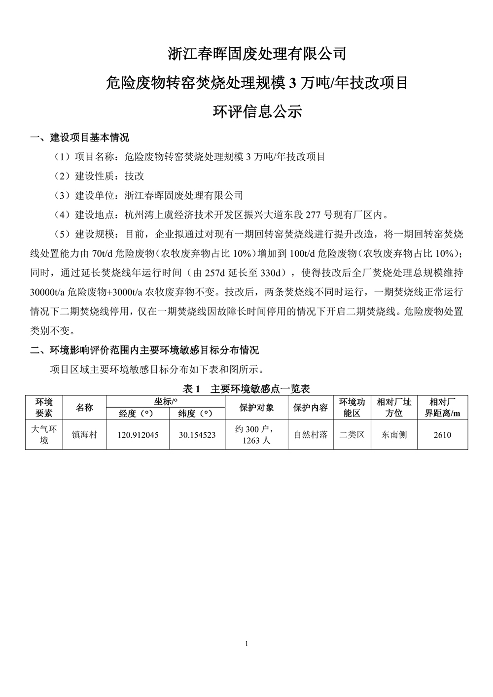 浙江春暉固廢處理有限公司危險廢物轉(zhuǎn)窯焚燒處理規(guī)模3萬噸/年技改項目環(huán)評信息公示