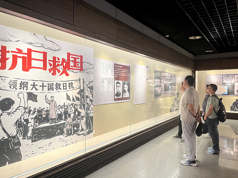 在影像展區,黨員們駐足觀看抗戰主題視頻,畫面中炮火紛飛的戰場、群眾支援前線的熱血場景、戰士們沖鋒陷陣的堅毅身影,仿佛將大家帶回那個救亡圖存的艱難年代。從吳興縣私立縐業小學師生捐購“中華兒童號”飛機的赤誠義舉,到愛國青年創辦《國魂》快報傳遞抗日火種;從郎玉麟、李泉生率領武裝部隊奮勇殲敵的壯烈場景,到新四軍第六師第十六旅開辟郎廣長敵后抗日根據地的戰略智慧,每一段故事都讓黨員們深刻感受到湖州人民在黨的領導下,不畏強敵、團結抗爭的民族氣節。