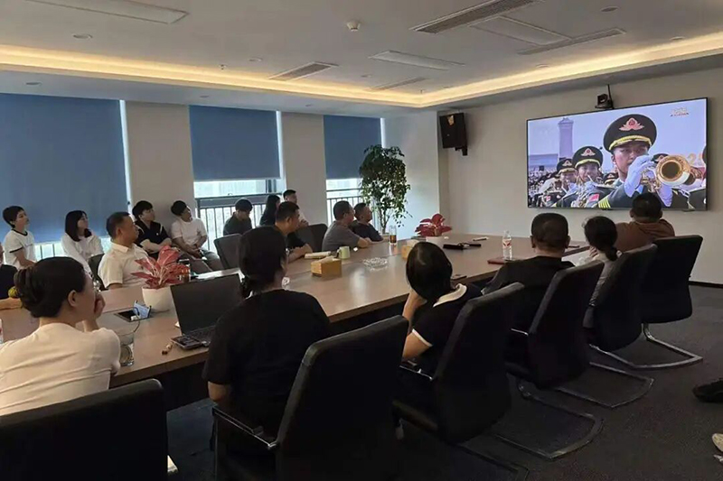 員工們聚集到公司會議室,等待閱兵開始。看到威武的閱兵方陣、先進的武器裝備、受閱官兵鏗鏘的步伐,員工們為之熱血沸騰,激動之情溢于言表。不僅充分感受偉大抗戰精神,更激發了愛國熱情和工作動力。員工們紛紛表示,將以更飽滿的熱情、更嚴謹的態度投入崗位,為公司的發展和國家的繁榮注入紅色動能。